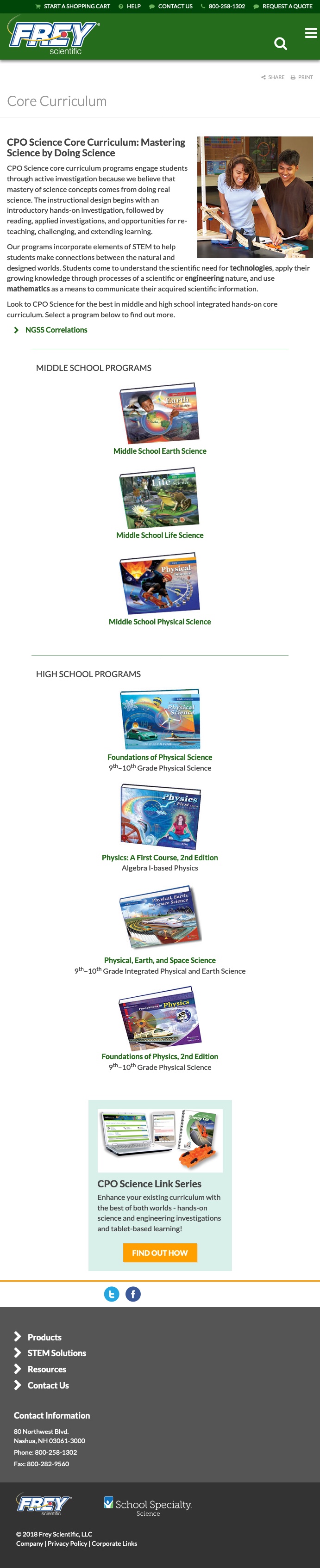 While the majority of pages on the site are similar to pages on the Delta Education site, there were some that were unique to Frey. A few of those are highlighted below.